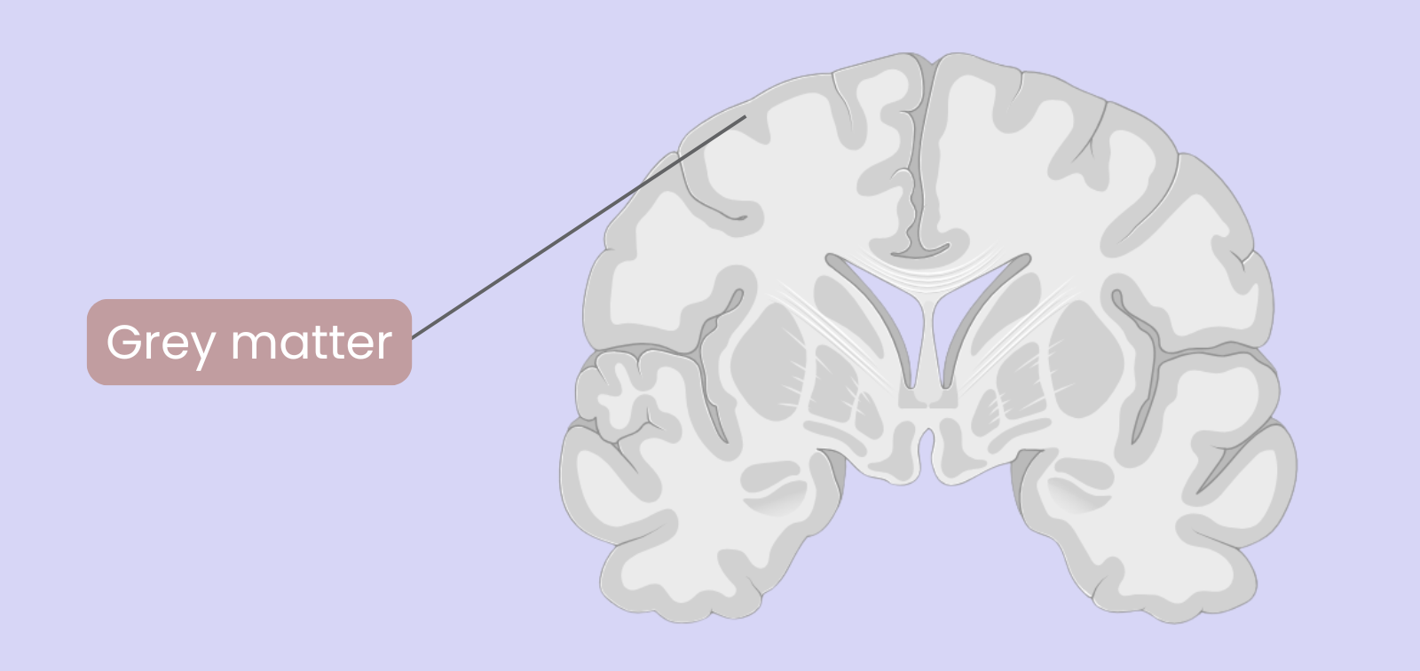 Unlike white matter, grey matter does not transmit signals quickly because it lacks the fatty layer called myelin. Instead, it processes information.